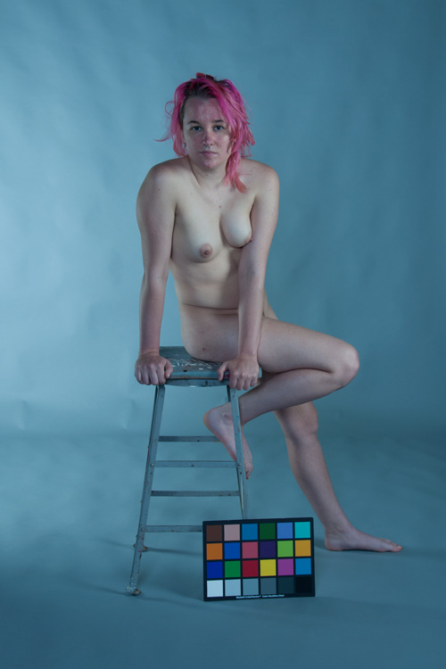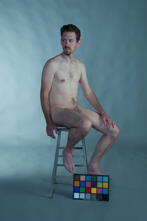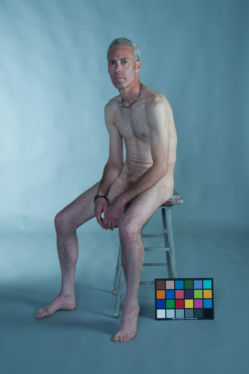 With the goal of creating a catalog of color shifts as influenced by participants themselves, I photograph these portrait studies under diffuse daylight balanced (5500°K) studio strobes against a plain gray background. The exposure and white balance, though, are measured against the skin forcing the shift in both color and density.